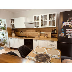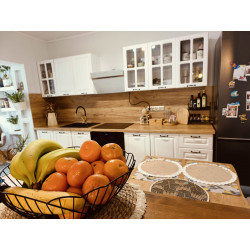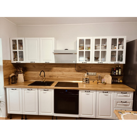 Mobila din MDf , cuprinde corpurile, blatul ,manere, montaj.